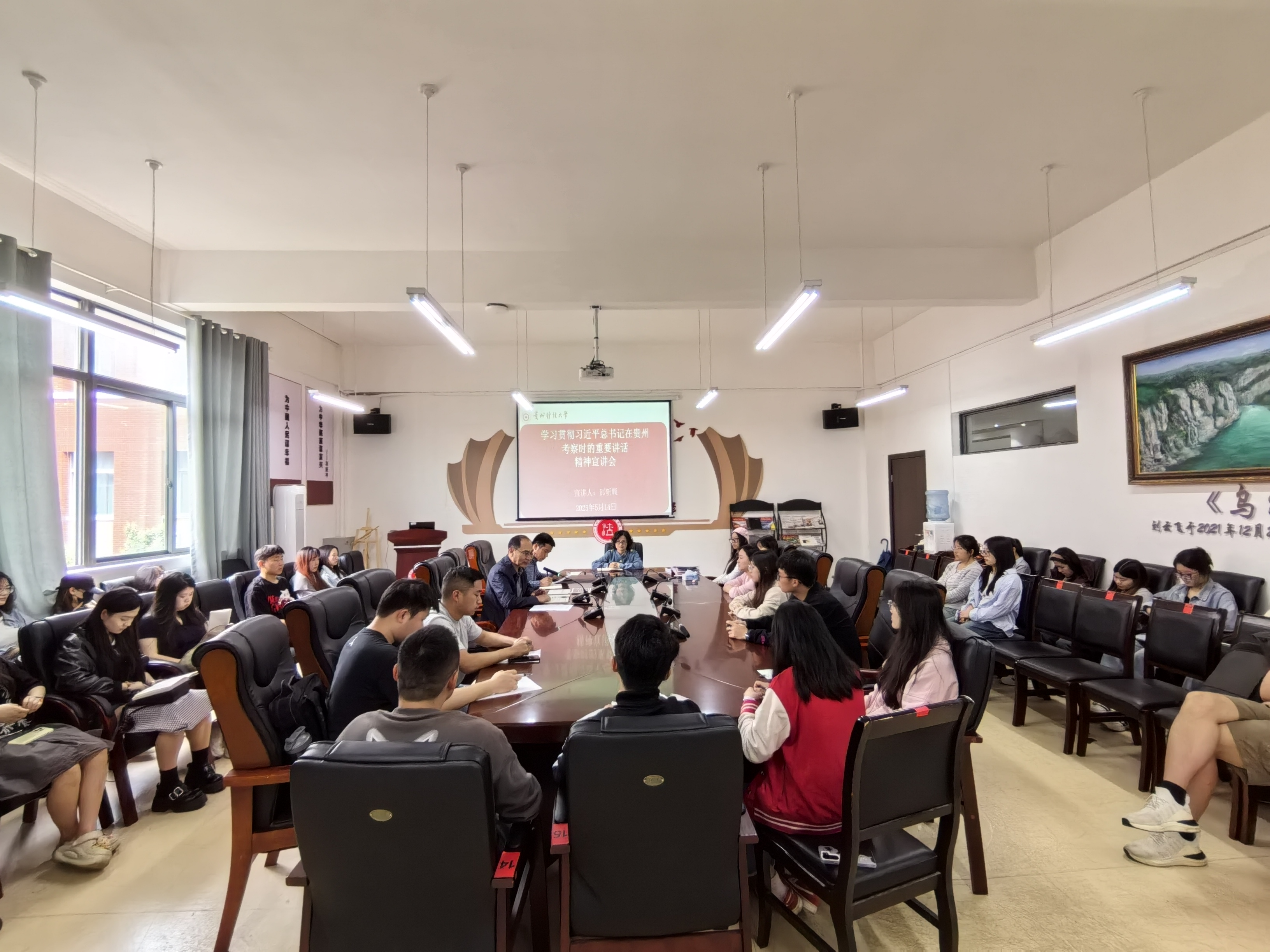 (法学院 图文 潘吉脉)5月14日,法学院研究生第二党支部召开深入学习贯彻半岛(中国)总书记在贵州考察时的重要讲话精神宣讲会,法学院党委书记邵新顺做宣讲报告,党支部全体党员、发展对象及积极分子共60余人参会。