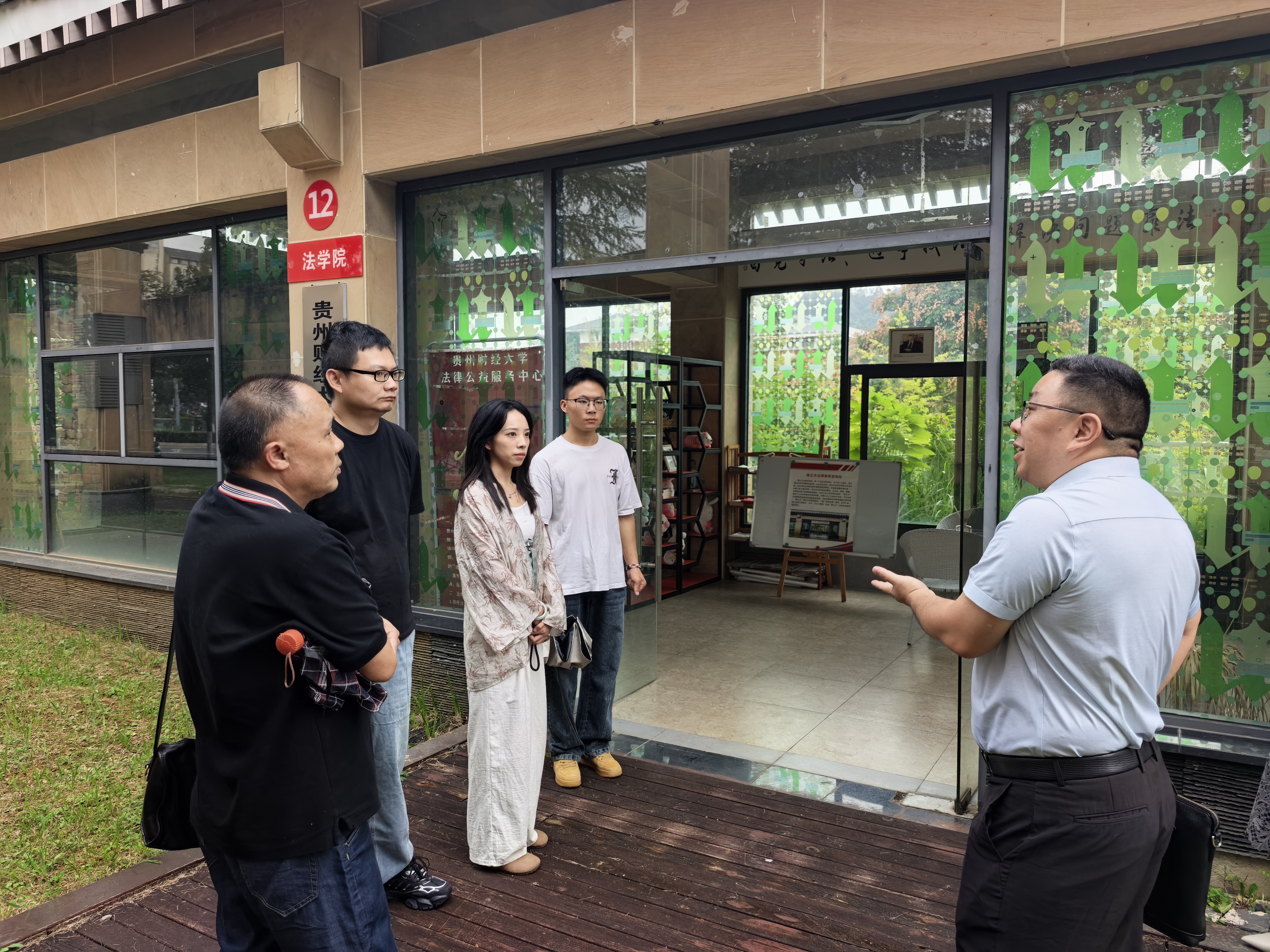 (法学院 向涛 图|文 何德爽)2025年9月22日,法学院副院长(主持工作)曹务坤、文学院院长杨经华与贵州跃达禾律师事务所主任谢忠俊及团队走进BANDAO.COM法律公益服务中心开展座谈,就三方共建“BANDAO.COM、文学院法律公益服务新媒体运营部”进行了深入交流并达成初步合作意向。法学院副科级专职组织员向涛、团委负责人刘美伶及法律事务俱乐部负责人共同参加。
